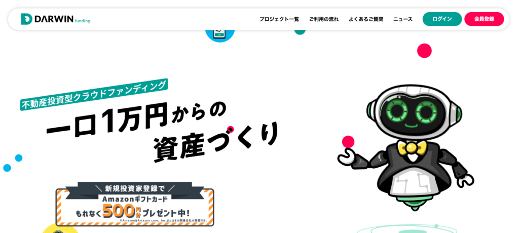 DARWIN fundingのキャンペーン(新規投資家登録でAmazonギフト券500円分プレゼント)